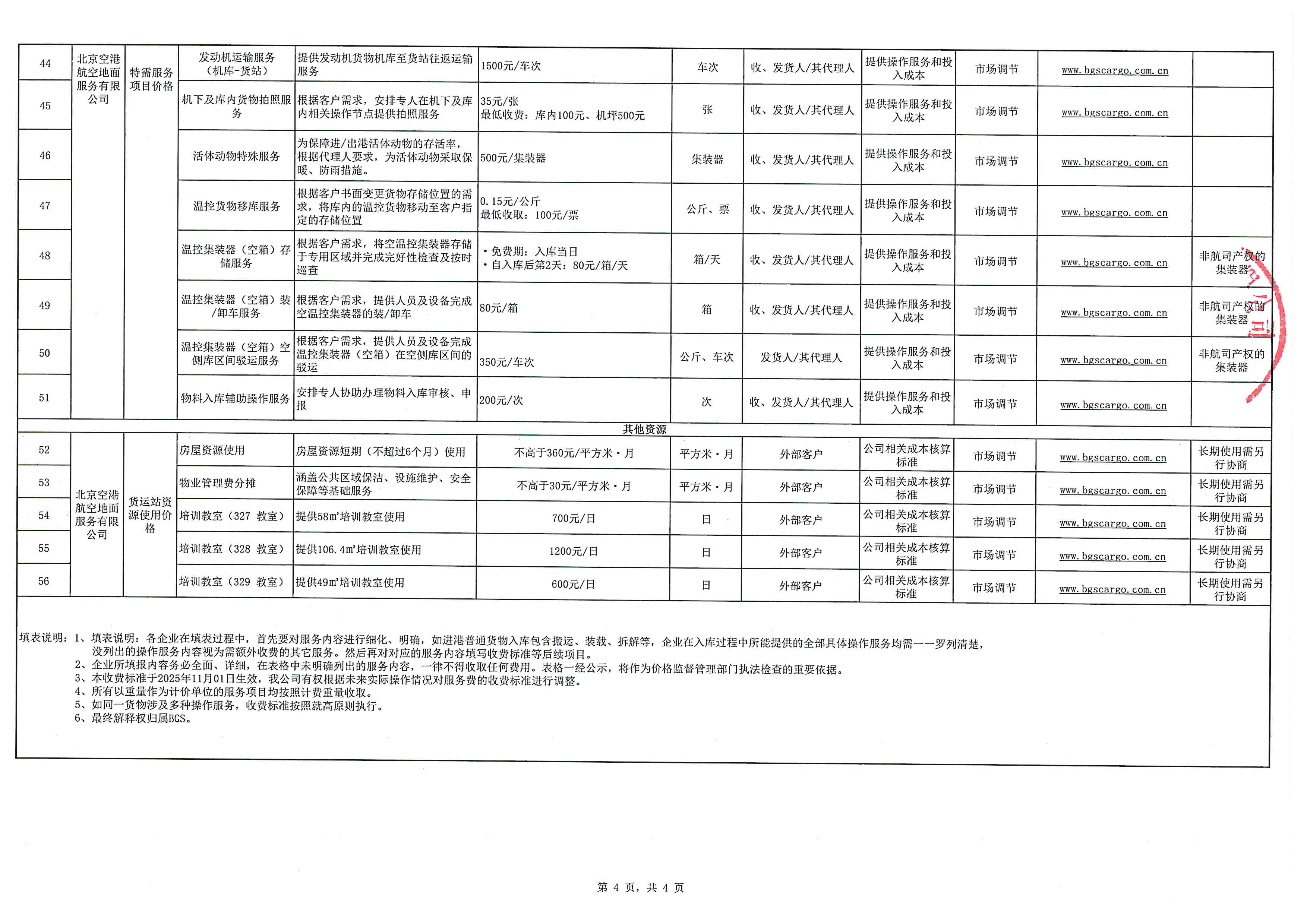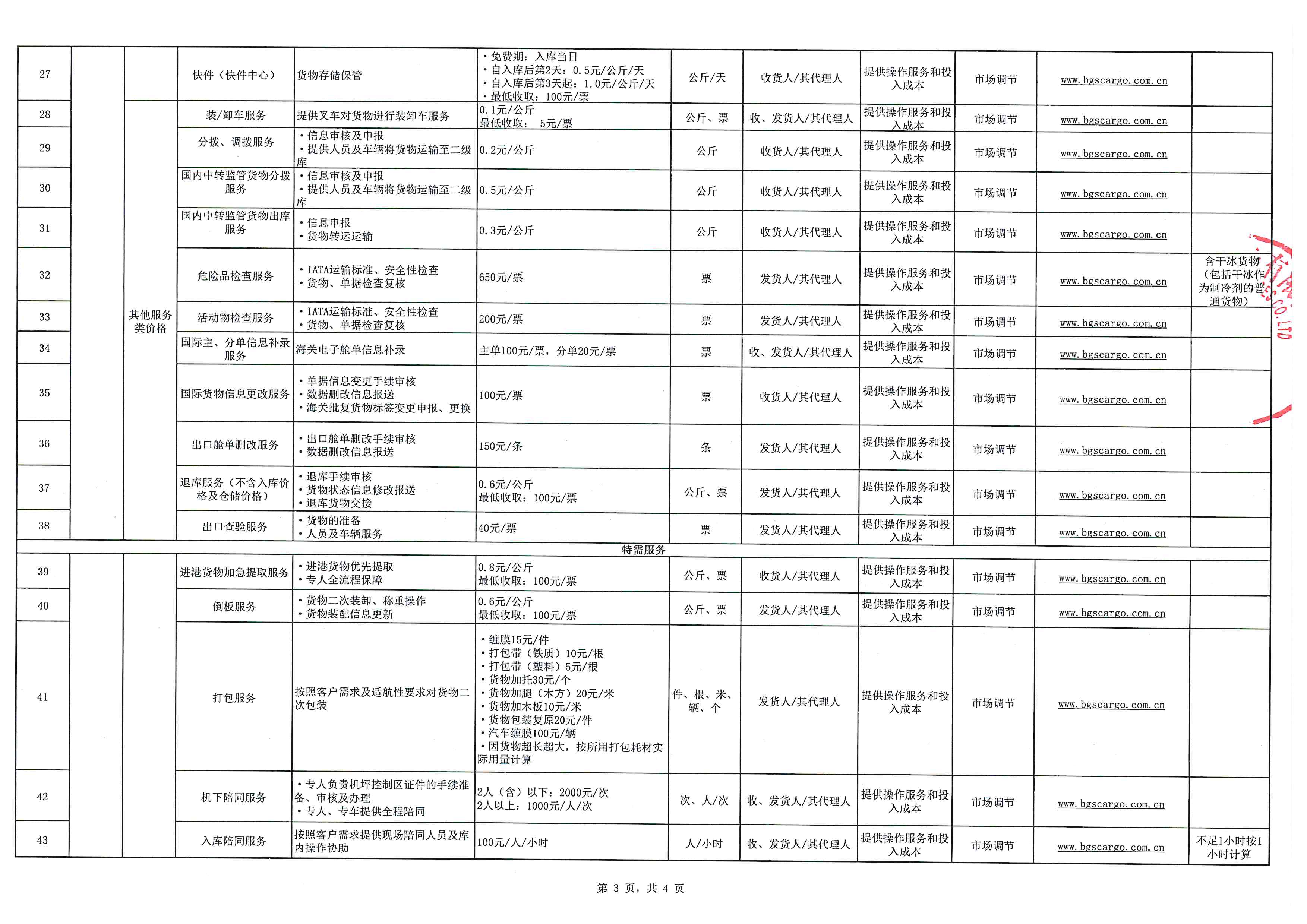 BGS公司货运国内服务收费标准